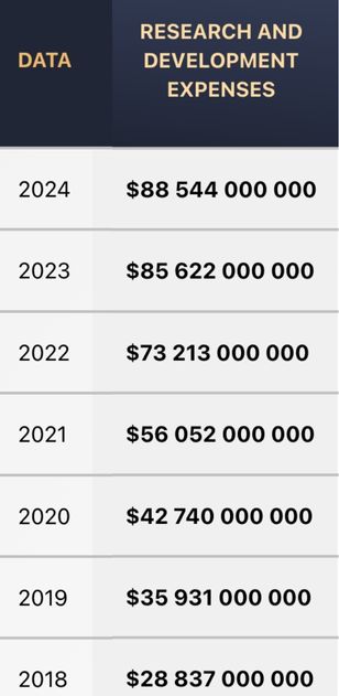 Na seguinte tabela podem ver as despesas que a Amazon teve desde 2018 em Pesquisa e Desenvolvimento. Como se pode ver, têm aumentado muito os gastos nos últimos anos.