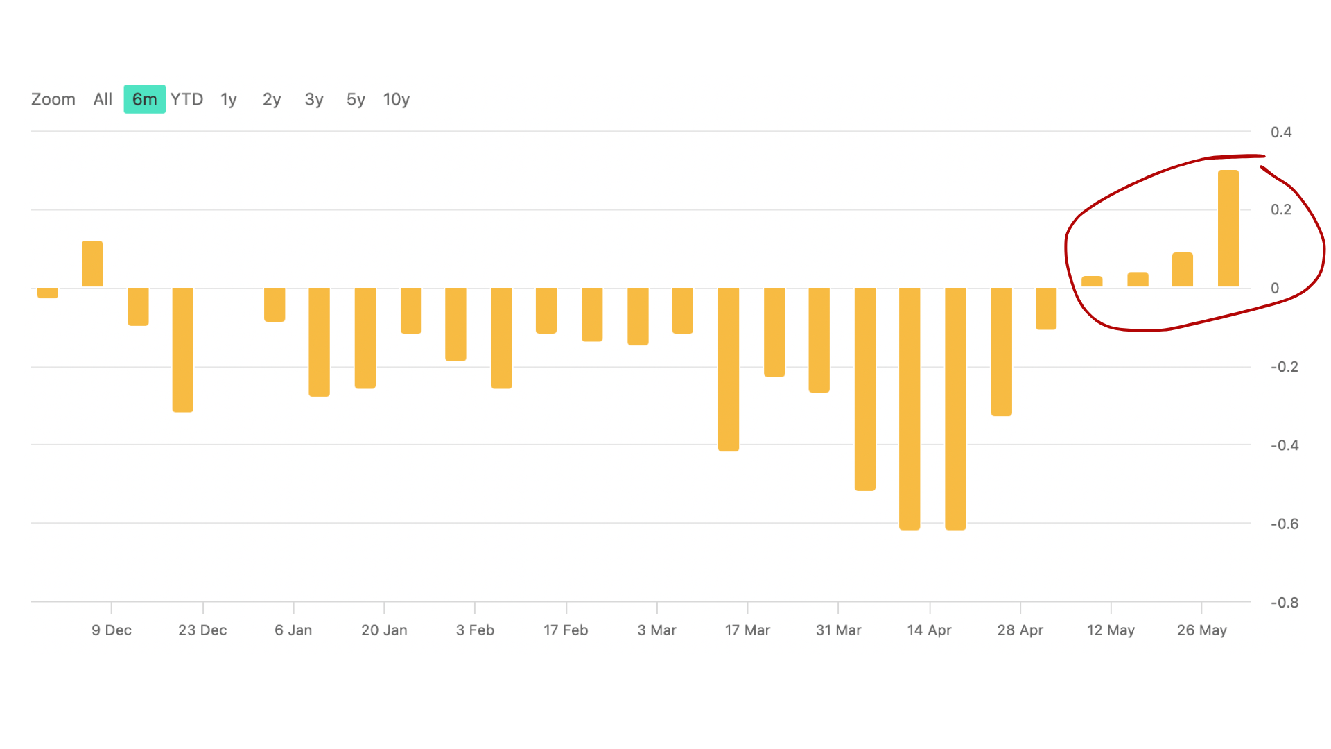 Depois de meses negativos, o Earnings Revision Index começou a subir, indicando que os analistas estão novamente a rever lucros em alta.