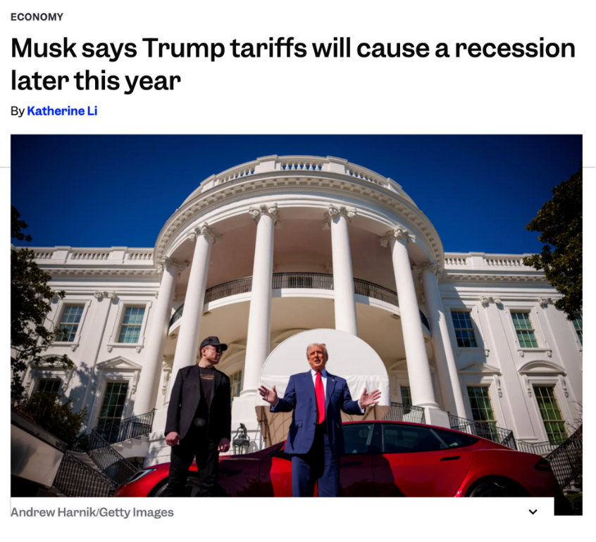 Elon Musk afirmou que prevê uma recessão no segundo semestre de 2025, devido ao impacto das tarifas comerciais impostas pelo presidente Donald Trump.